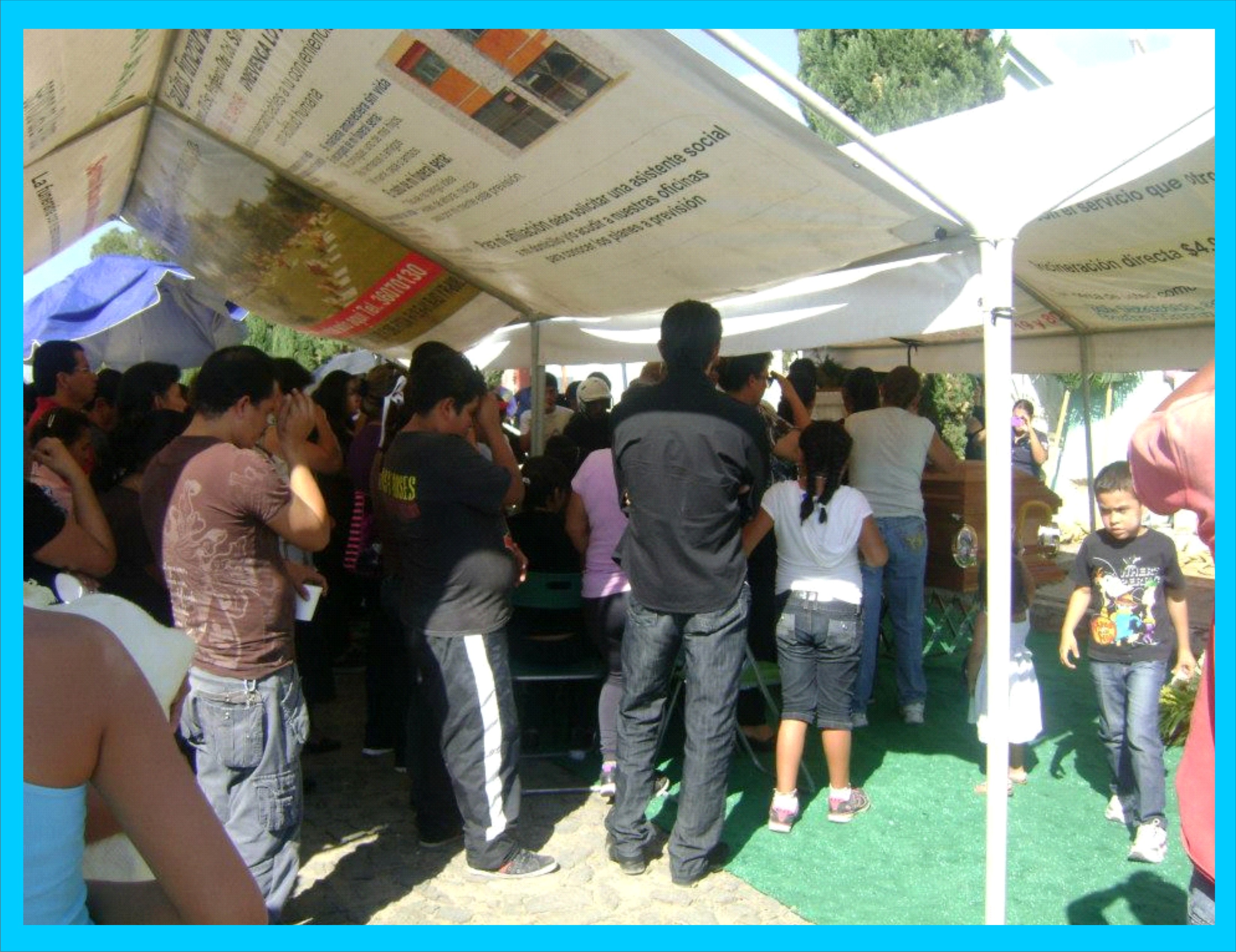 Toldo en cementerio y degustación de agua